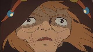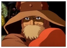 ◀大ババは腐海の辺境一帯で一番の高齢で、100歳以上だということです。映画版では目が見えない設定です。深い知識を持つ最高齢者ということで、人々の尊敬を集めています。「風の谷」に伝わる「青き衣の者」や「大海嘯」などの伝説の語り部です。