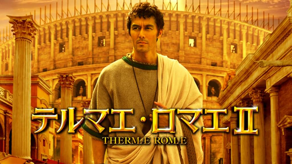 平和か領土拡大か…ローマ帝国を二分する危機をめぐり、浴場設計技師ルシウスが再び活躍。巨大なコロッセオやグラディエーターが登場するなど、物語もグーンとスケールアップ。前作とは異なる画作りを目指してブルガリアで撮影を敢行されるばかりでなく、さらに、草津温泉をはじめ日本国内の有名な温泉地でも撮影が行われ、見どころは前作より倍増しています。