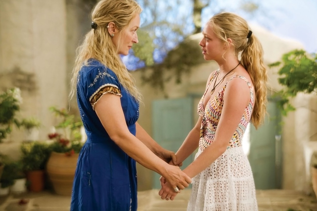 ギリシャのリゾート島で小さなホテルを経営するドナ(メリル・ストリープ)の娘・ソフィア(マンダ・セイフライド)は、結婚式を目前に控えていました。父親を知らずに育った彼女は、ドナに内緒で母の日記からかつての恋人たちに式の招待状をおくります。結婚式前日、何も知らない元恋人3人が島にやってくるのですが…。